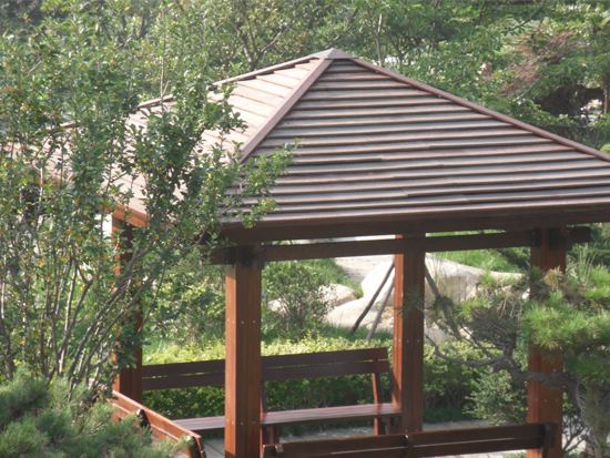 防腐木涼亭因為其防腐環(huán)保性近年來被大家廣為運用,防腐木涼亭的特點是防腐木在選擇材料上,都會選擇比較堅硬的帶點香味木材,然后經(jīng)過高溫對木材進行碳化,碳化好的木材有原始的深棕色,含水量少,材質(zhì)穩(wěn)固,不易被生物侵襲,天然的香味對身體還有好處。而且不會使用任何工業(yè)原料,油漆之類的,更加環(huán)保。其所具有的防霉性、防腐性和防蟲性的優(yōu)點,能夠讓涼亭得到更好的保護,不必擔(dān)心涼亭會被雨水侵蝕,讓涼亭能夠更好的為人們提供休息的場所。防腐木涼亭已成為了現(xiàn)代人們的首選。